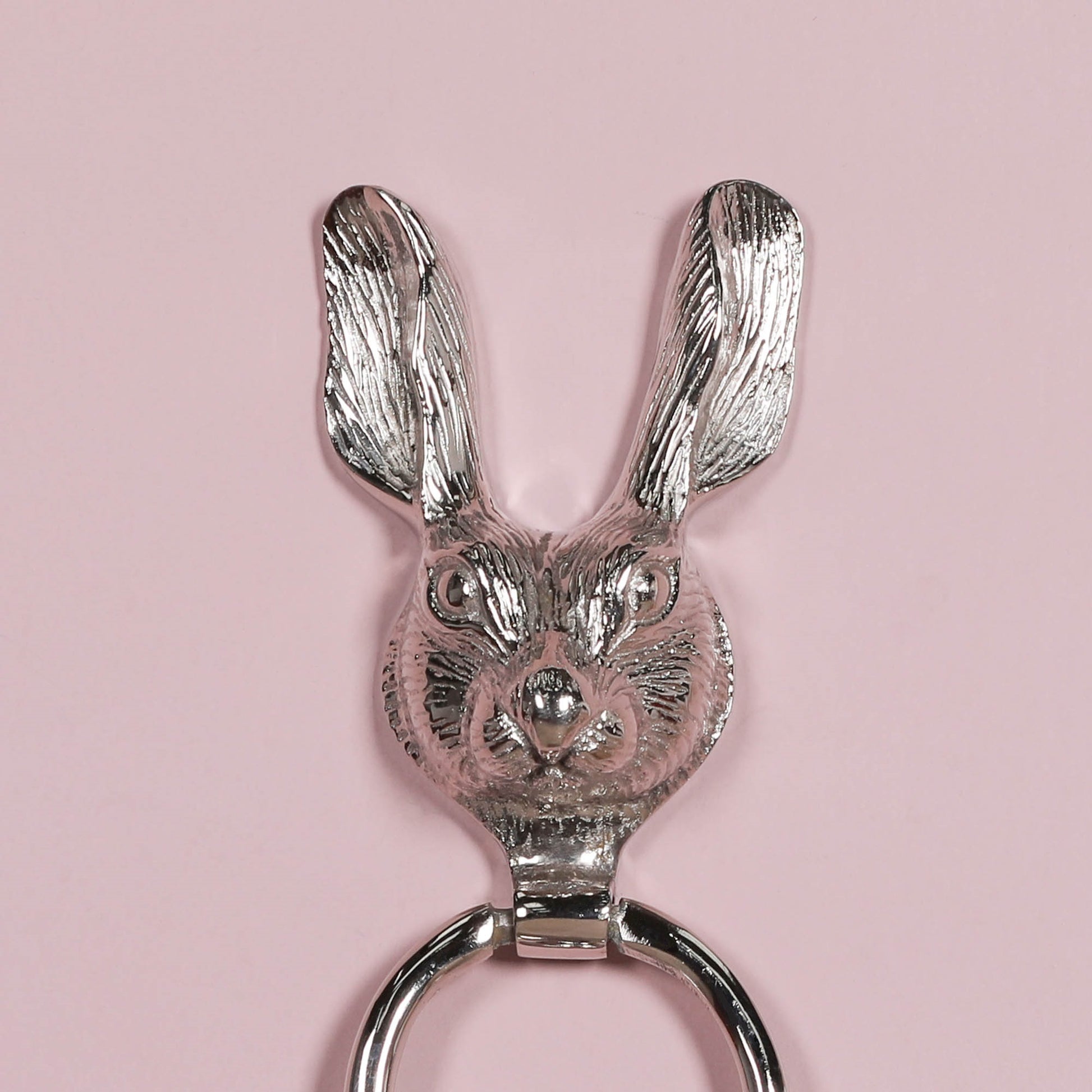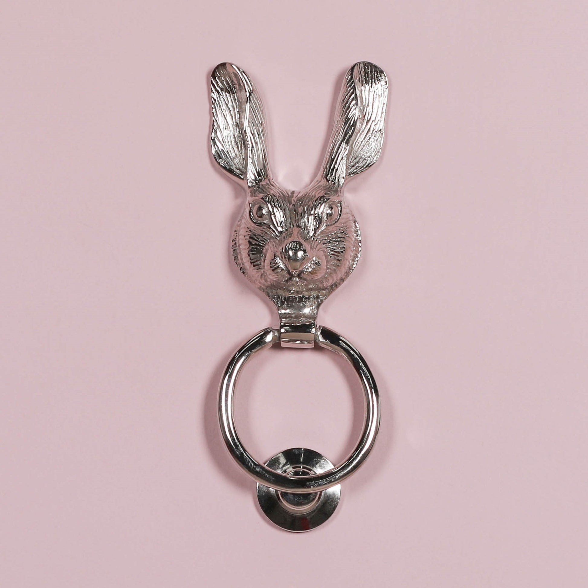 Designed from durable solid brass and finished in chrome, this exquisite door knocker adds a touch of charm and intrigue to your front door. Inspired by country wildlife, this delightful rabbit door knocker with its captivating appearance and bright chrome finish creates an inviting atmosphere, turning your entryway into a wonderful welcome for guests.