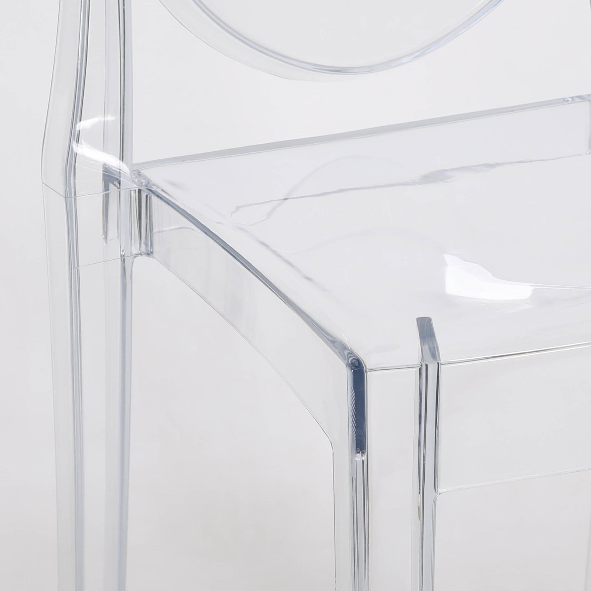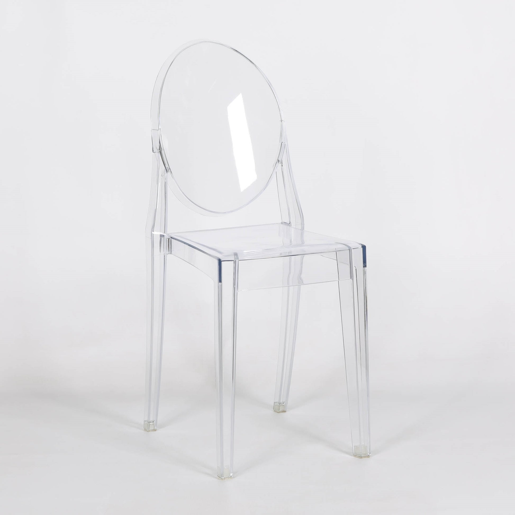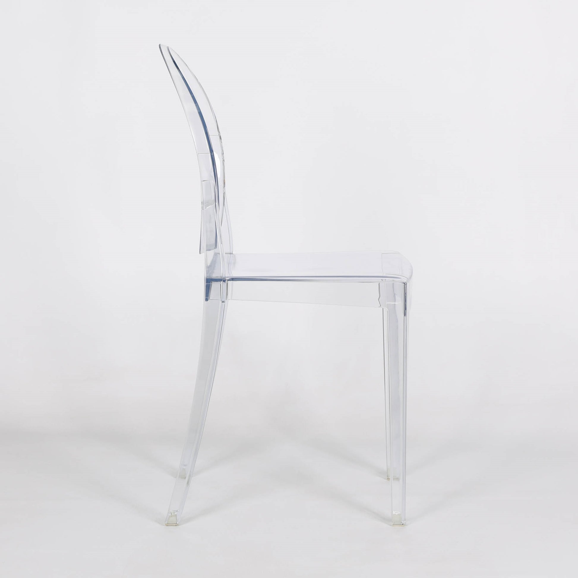 Made to top quality this product is a very modern classy design. It is stackable for ease of storage made from a very durable strong plastic. This reproduction Slim Ghost Chair is made from a single mould of polycarbonate. Making it extremely hard wearing as well as being shock and weather resistant.