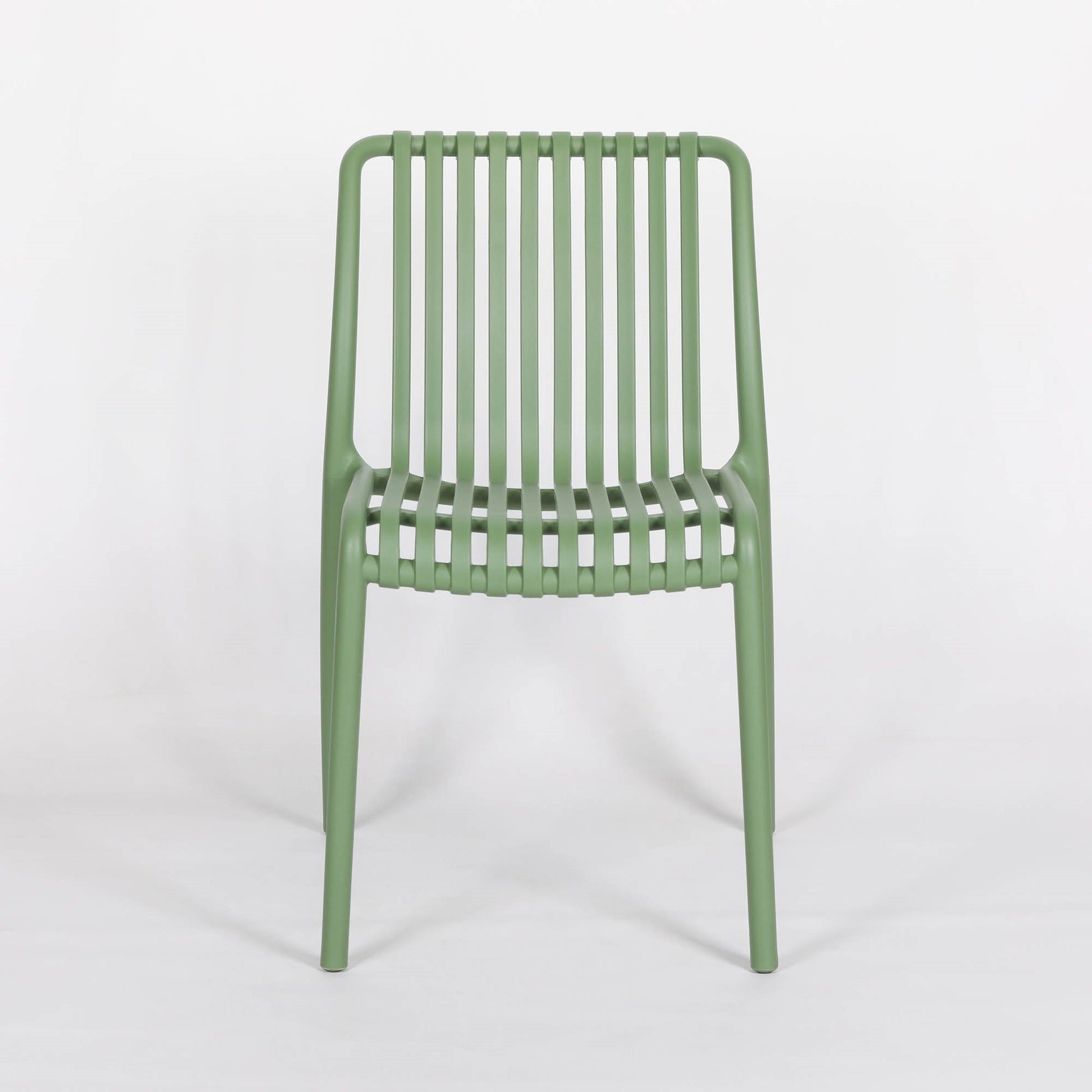Mid Century Style Sage Green Plastic Minimalist Slatted Dining Chair
